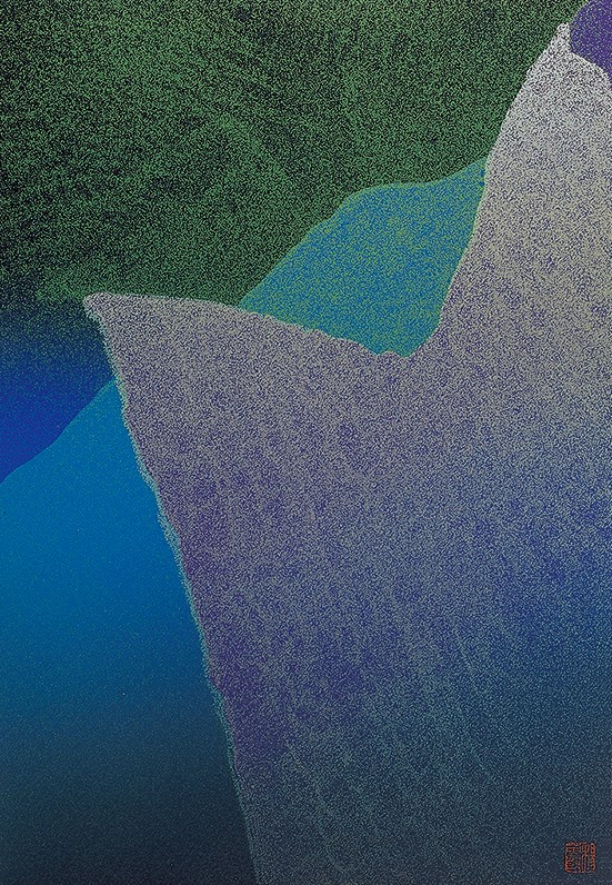 本體。 楊英風試圖以此幅作品來表達「禪」這個抽象的概念。其下作品名稱旁特地題上「雷射景觀」,應是他認為此作非單純的絹印版畫,